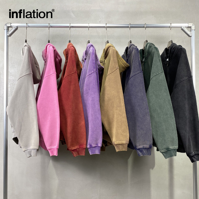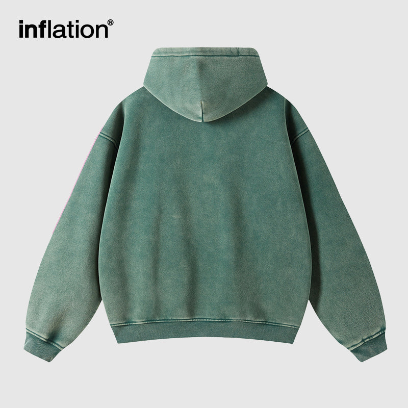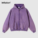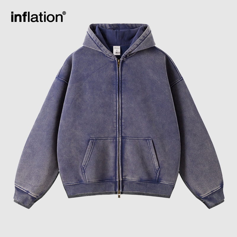 INFLATION Washed Distressed Fleece Zip Up Hoodies