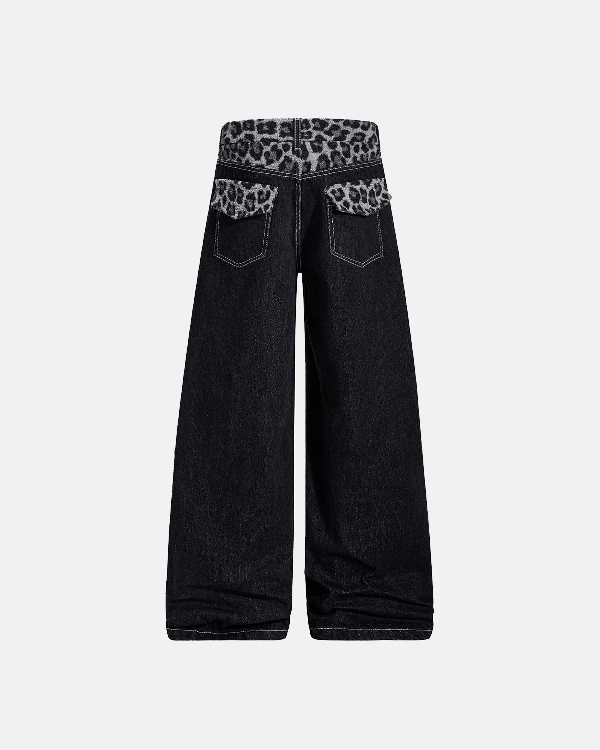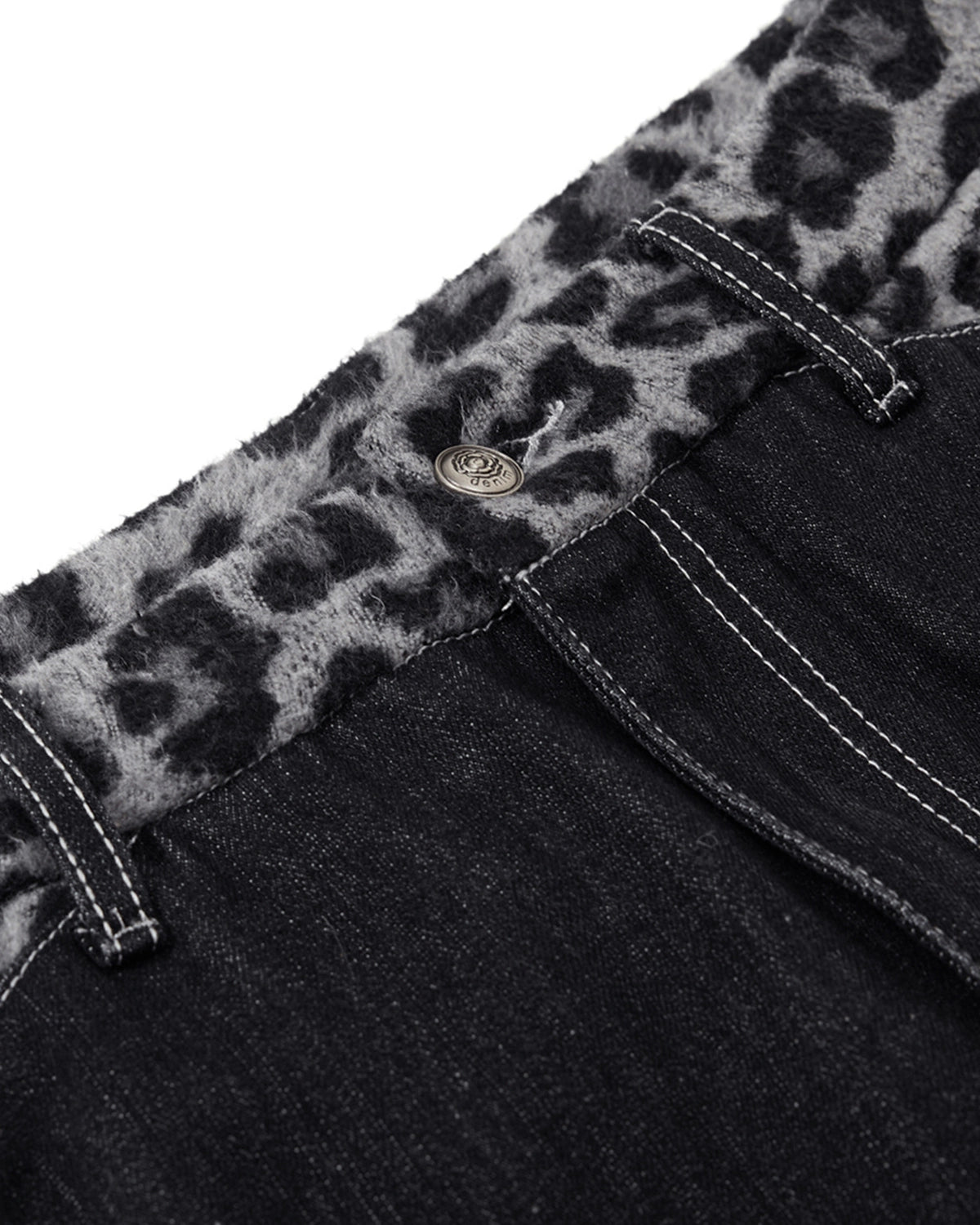 Leopard Patchwork Raw Straight-leg Jeans | Inflation Streetwear