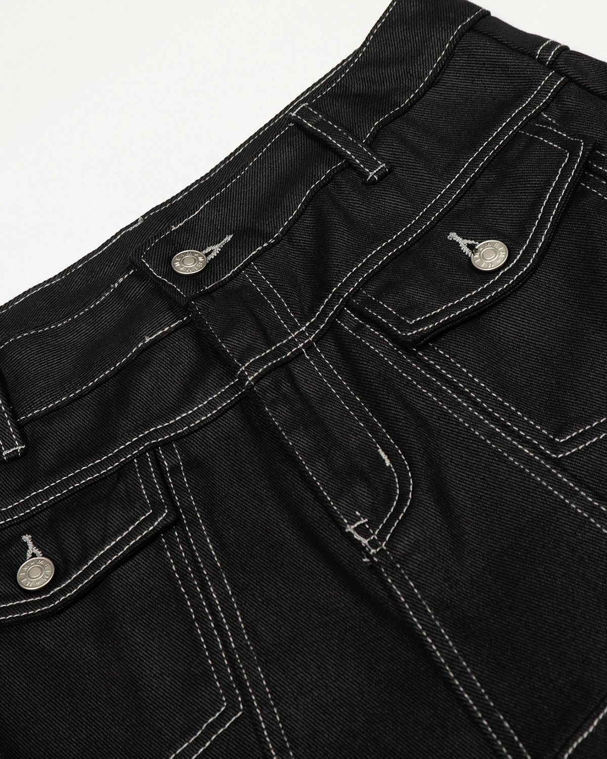 The INFLATION Letter Graphic Cargo Barrel Jeans combine modern streetwear with a vintage flair. Featuring a bold letter graphic print on the leg, these wide-leg denim cargo pants offer a relaxed fit for all-day comfort. The deconstructed design and contrast stitching enhance the urban streetwear vibe, while the loose fit and cargo pockets provide functionality and style. Perfect for pairing with oversized tees or jackets, these letter graphic jeans are the ultimate piece for anyone seeking comfortable street style with a bold twist.