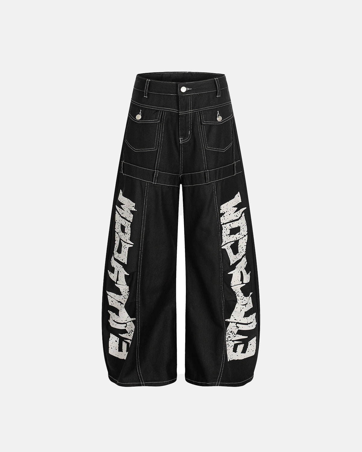 Letter Graphic Cargo Barrel Jeans | INFLATION Streetwear