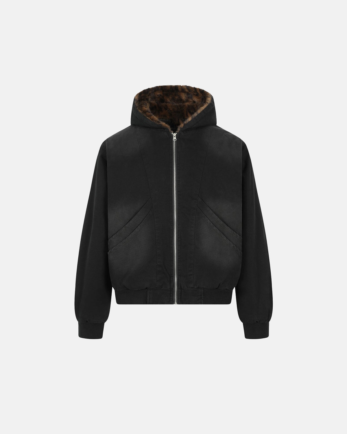 Monkey Wash Denim Leopard Faux Fur Jacket | Inflation Streetwear