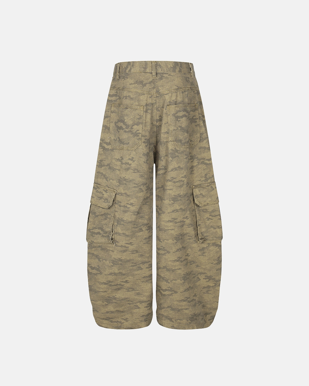 Multi Pockets Khaki Camo Barrel Jeans | Inflation Streetwear