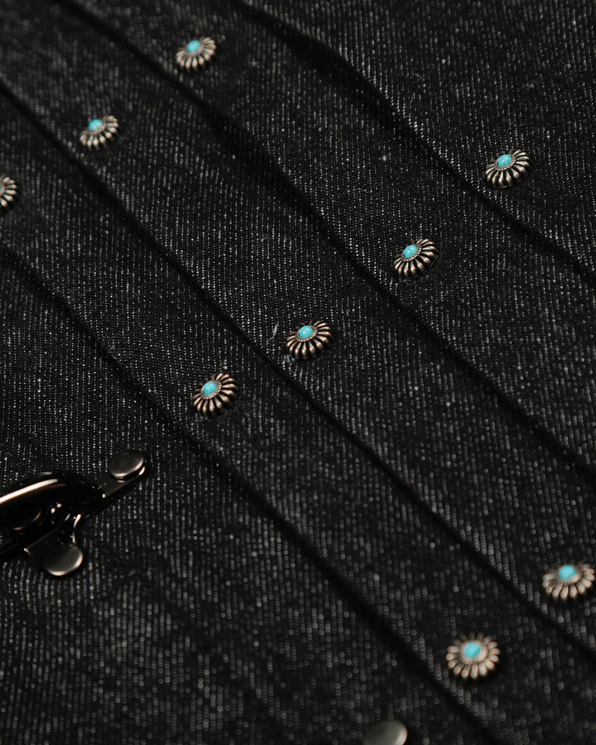 The INFLATION Vintage Denim Jacket combines retro style with modern streetwear. Featuring distinctive pleats and gemstone buttons, this loose fit jacket redefines casual style. Made from raw durable denim, the jacket is perfect for layering over casual outfits or pairing with other streetwear essentials for a bold, fashion-forward look.