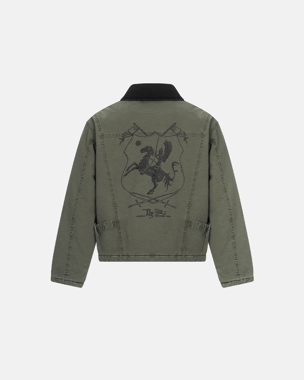 Step into bold streetwear style with the Retro Horse Graphic Cropped Clasp Cotton Jacket by Inflation Streetwear. Crafted from high-quality cotton, this jacket features a distinctive horse graphic on the back, symbolizing freedom and power. The design is complemented by functional fireman clasp fastenings, giving it a modern twist on classic outerwear. Finished with a black corduroy collar and premium stitching, this jacket combines fashion with utility. Its relaxed fit ensures comfort while the unique graphic print makes it a standout addition to your streetwear collection.