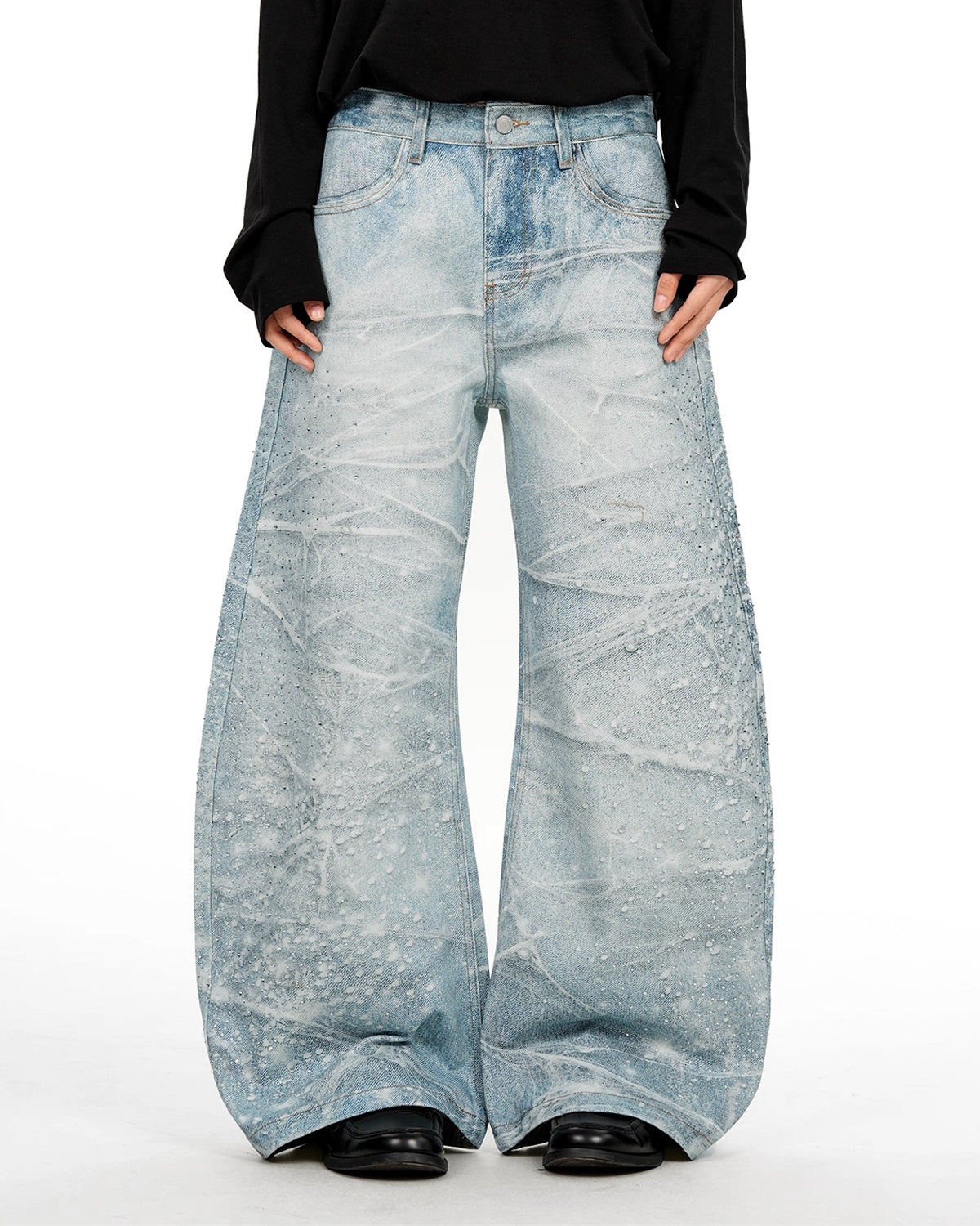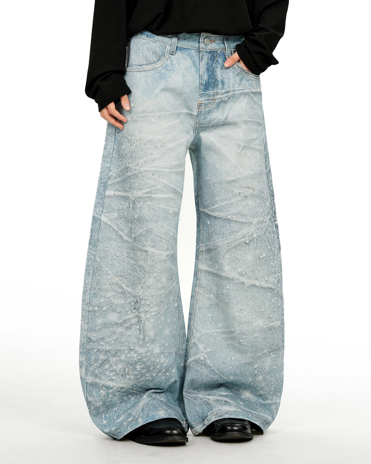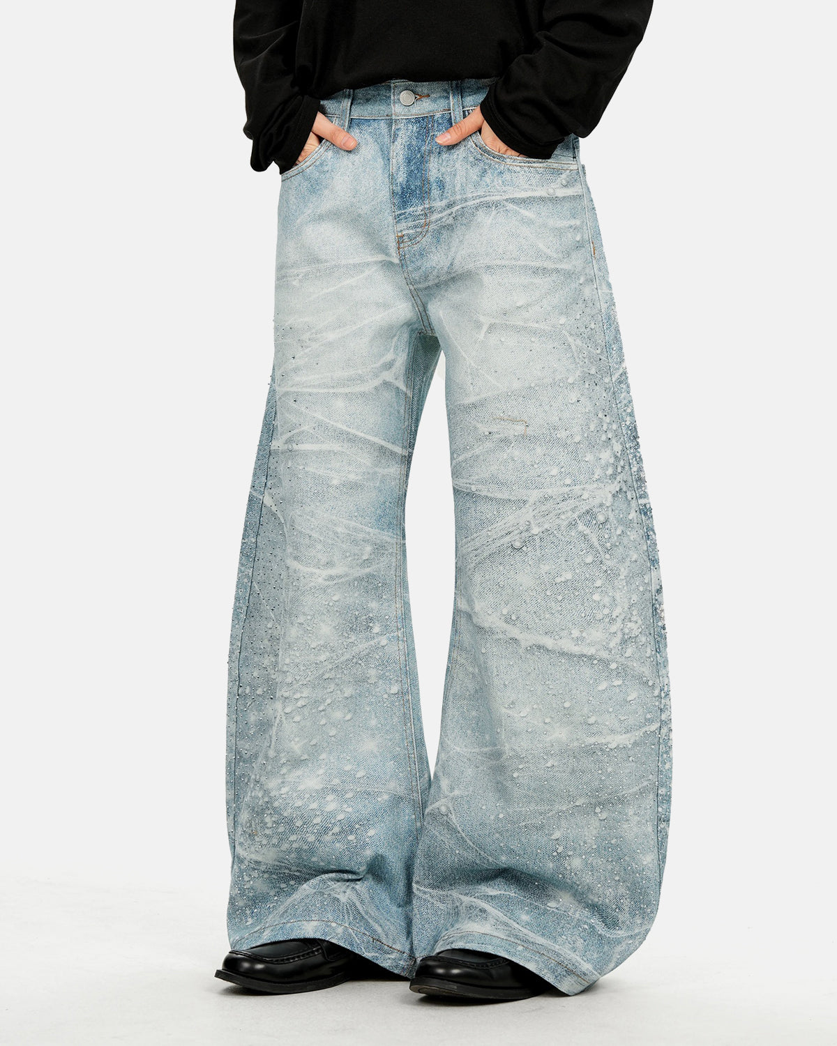 Rhinestone Lightning Baggy Barrel Jeans | Inflation Streetwear