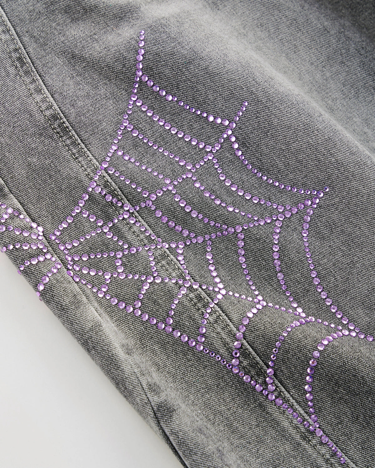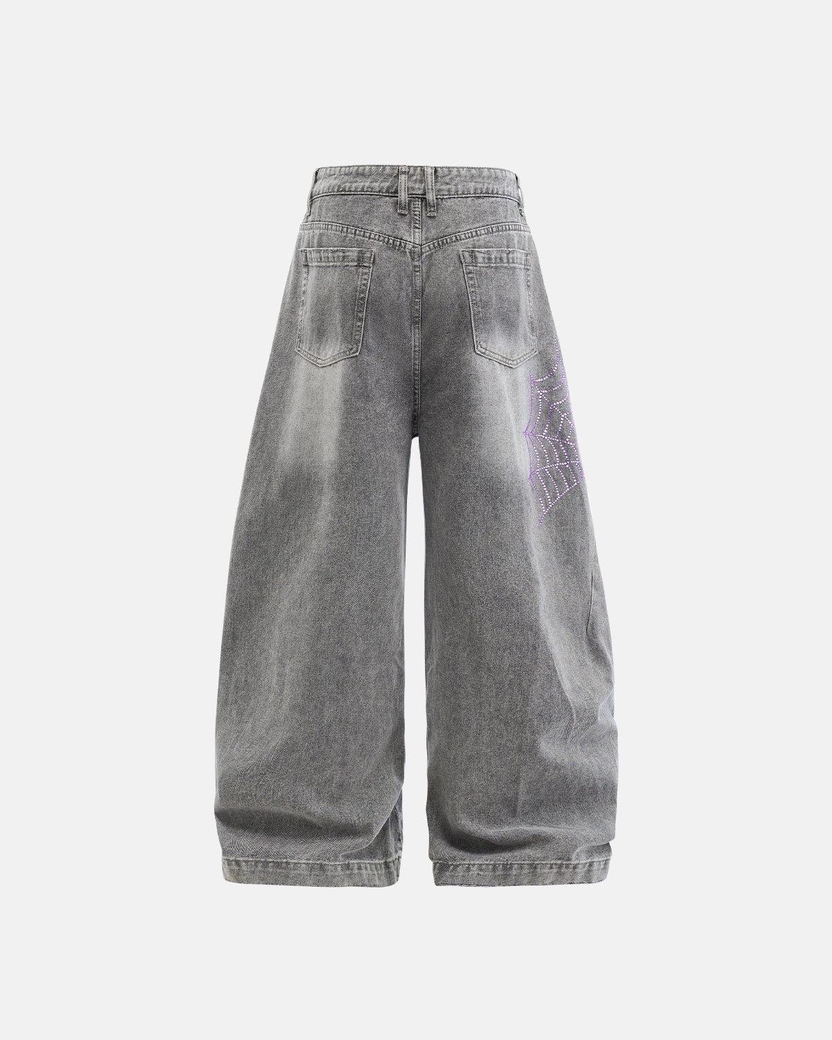 Spider Graphic Rhinestone Barrel Jeans | Inflation Streetewear