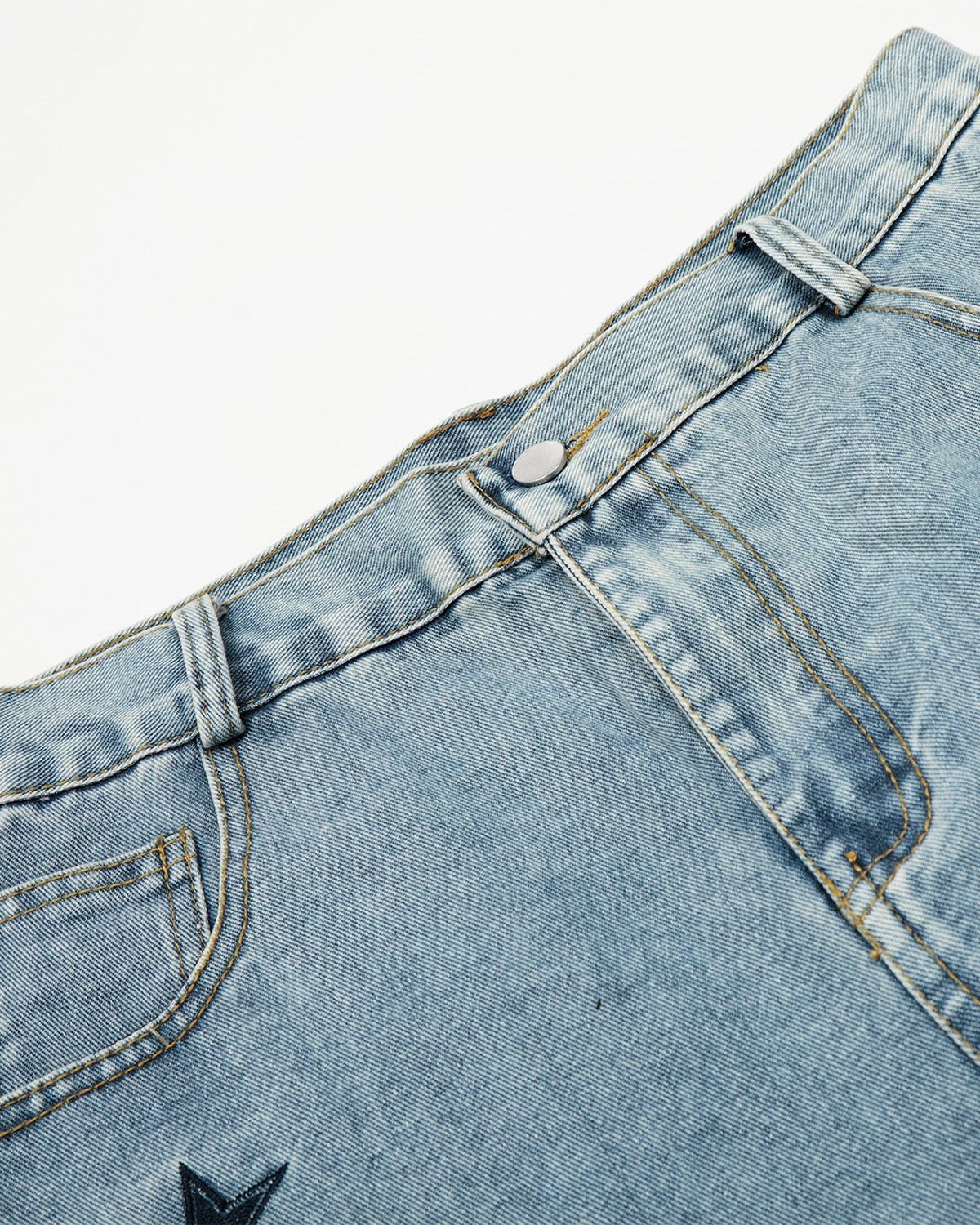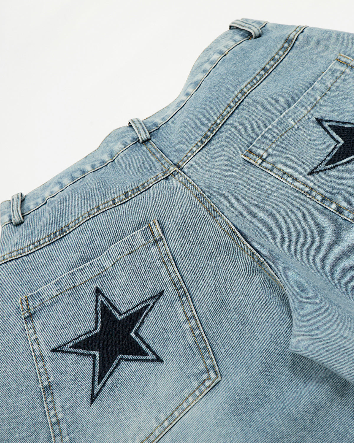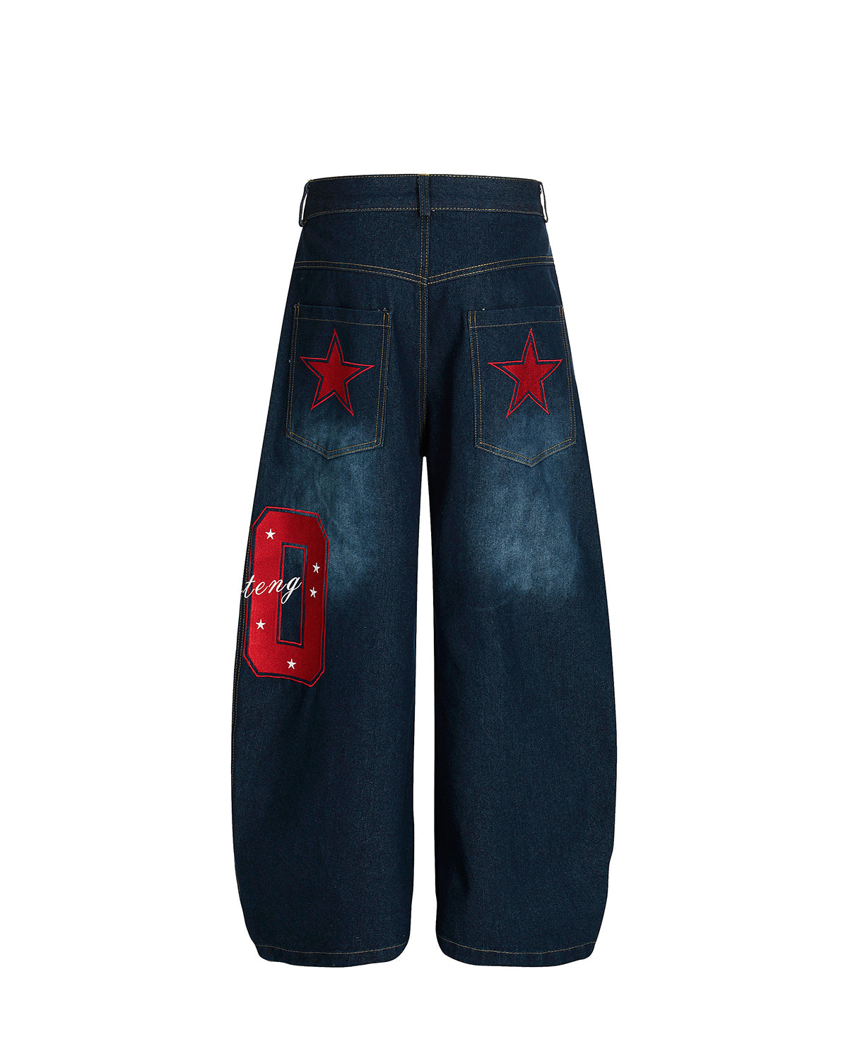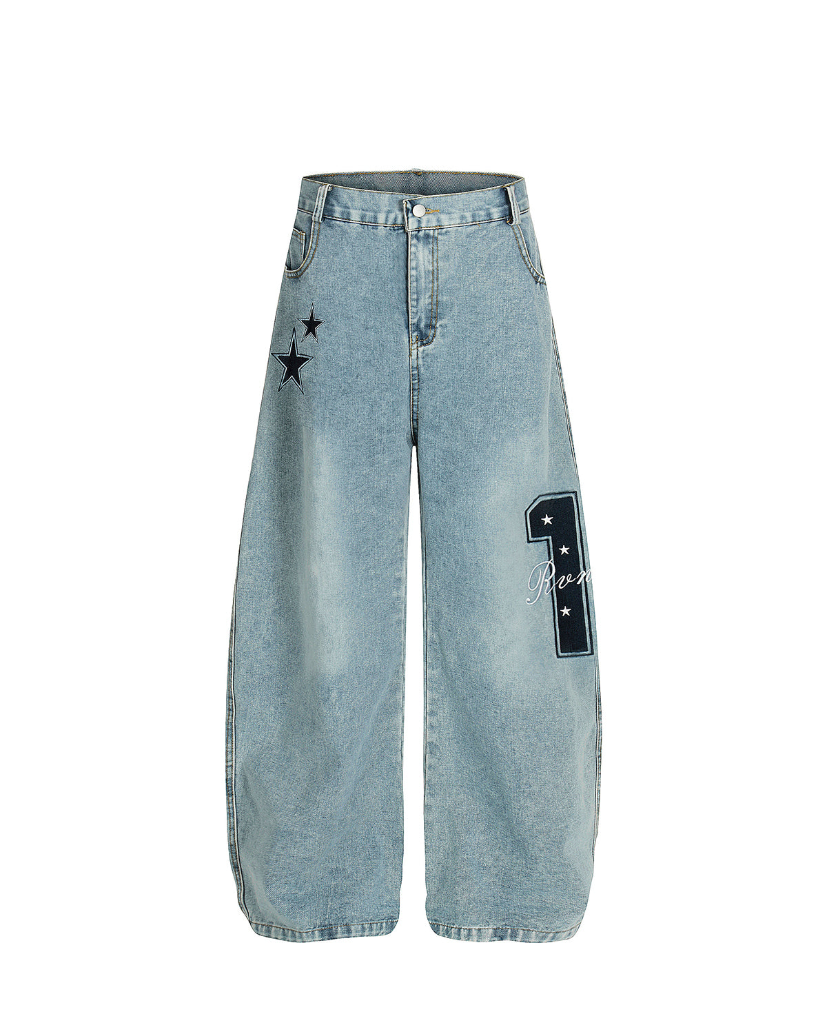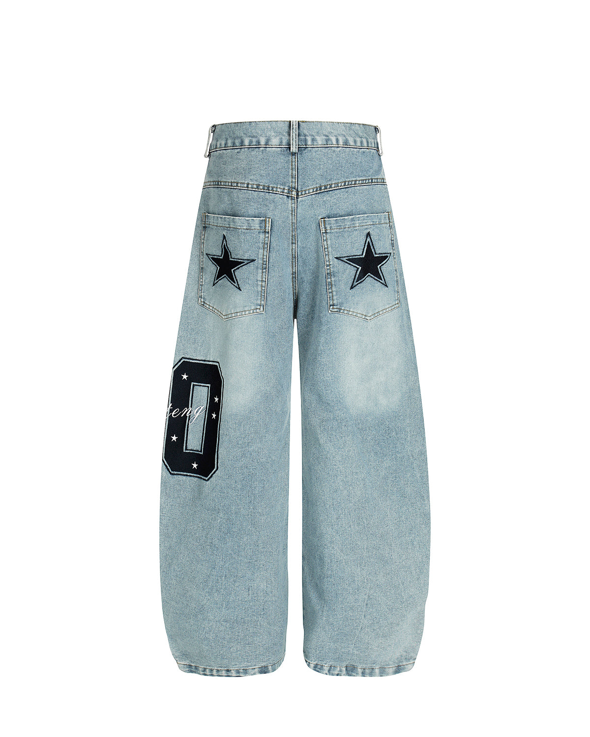Star Embroidered Pocket Barrel Jeans | Inflation Streetwear
