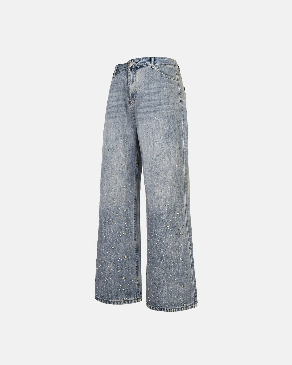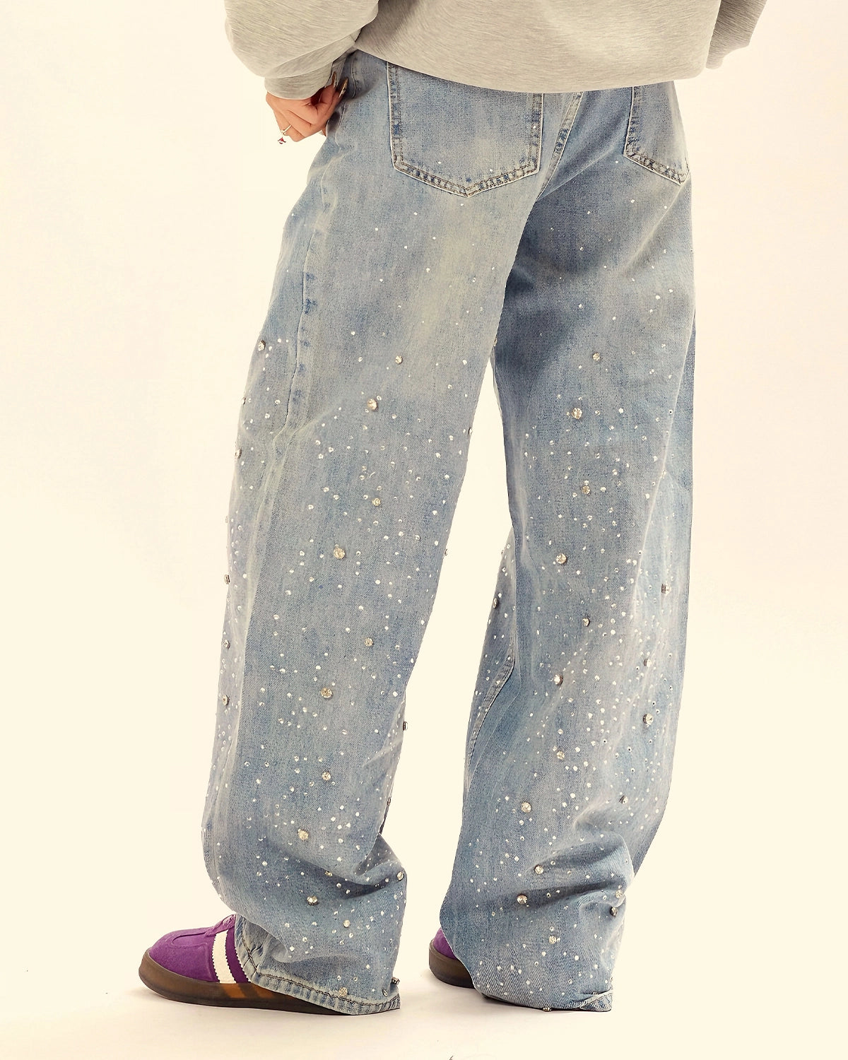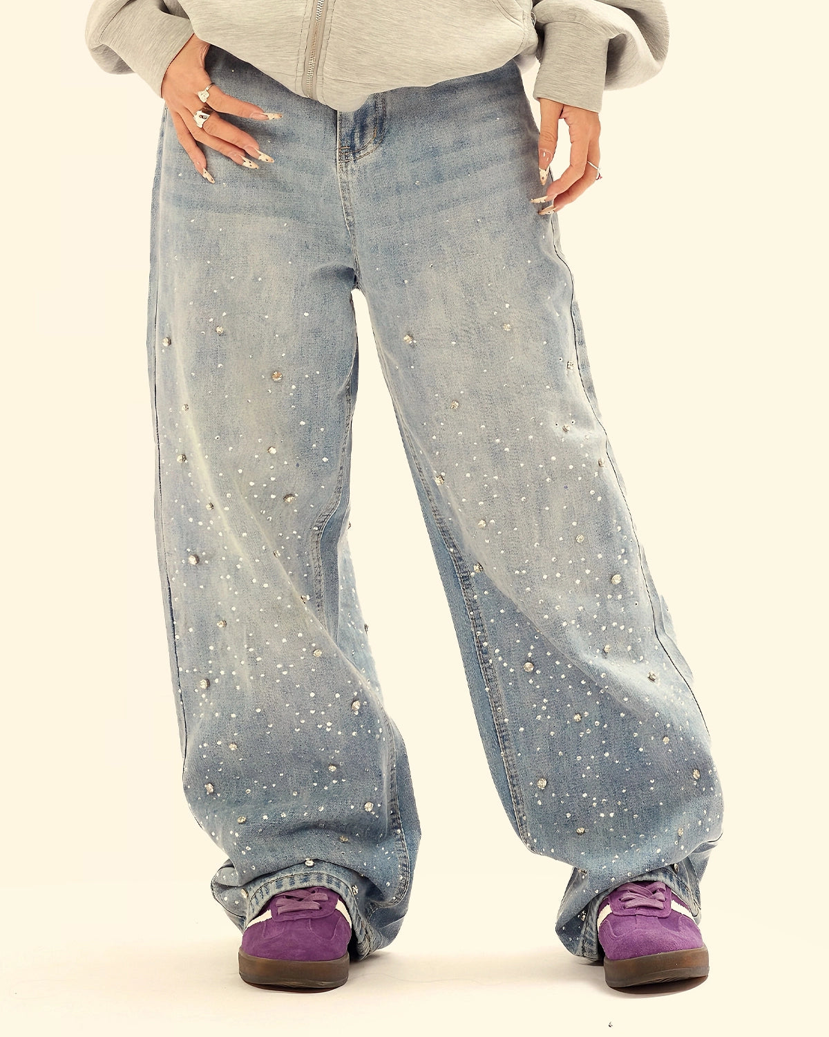 Studded Rhinestone Baggy Jeans | Inflation Streetwear