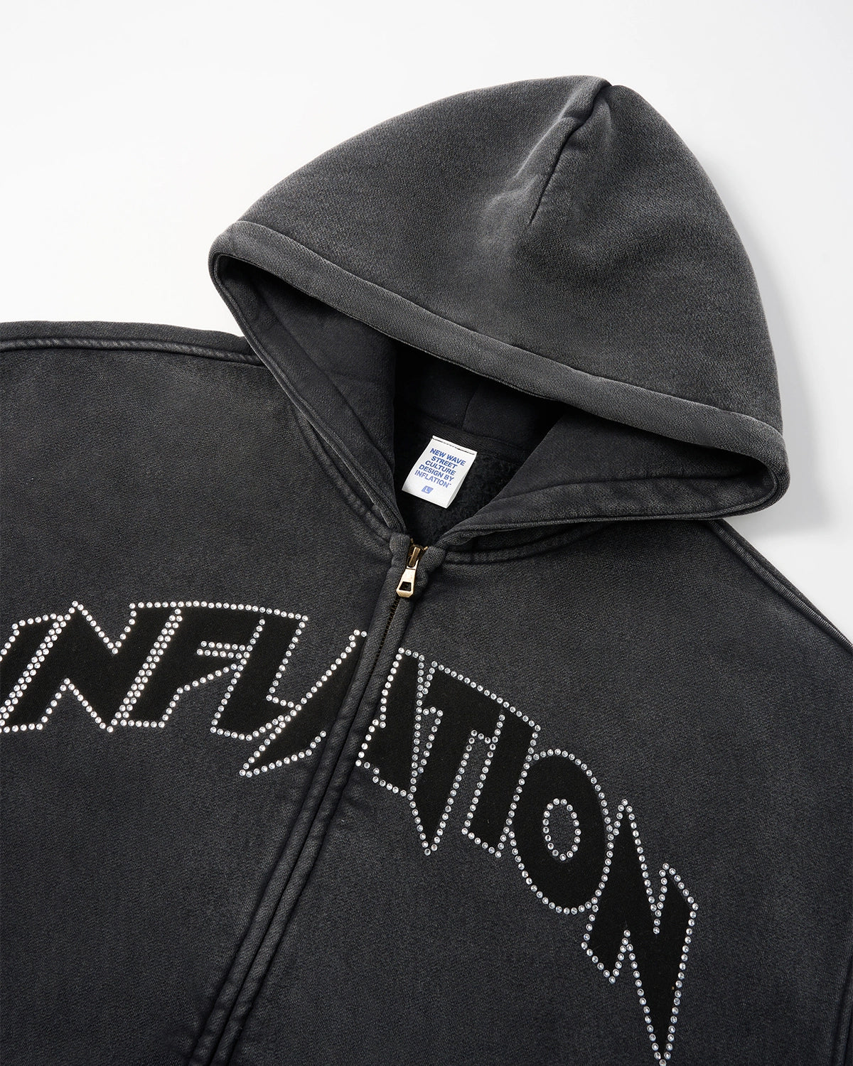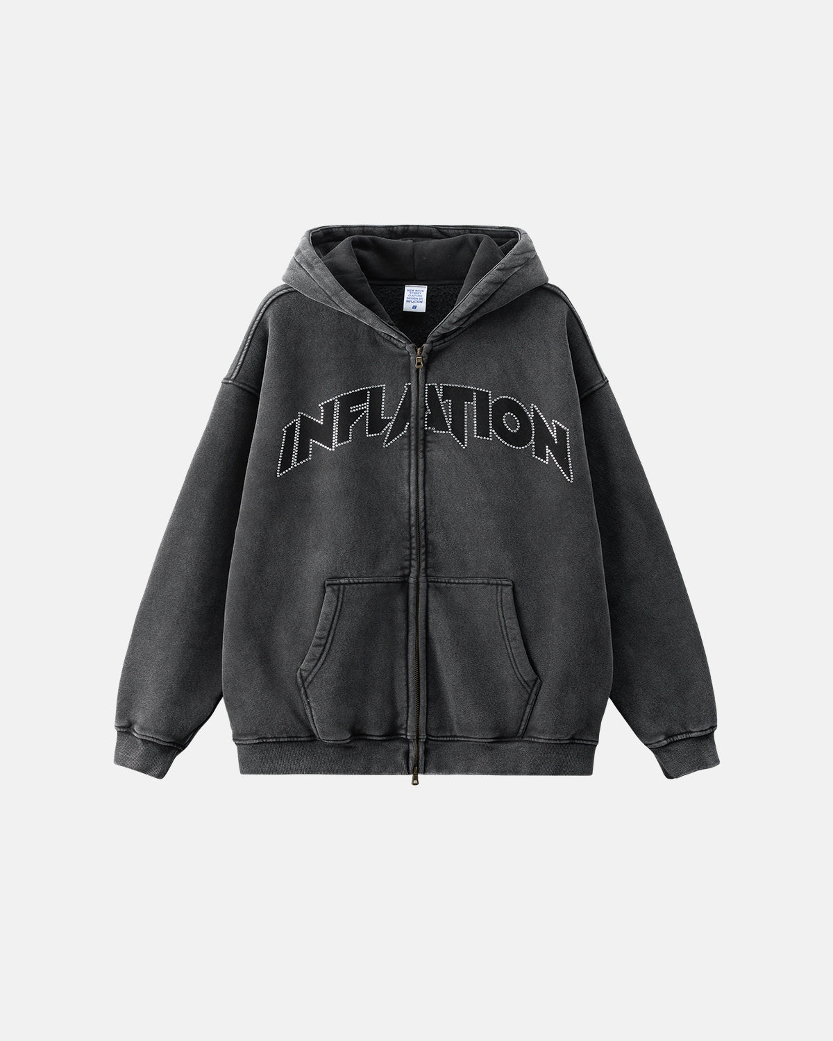 Totem Rhinestone Acid Wash Zip Up Hoodies | Inflation Streetwear