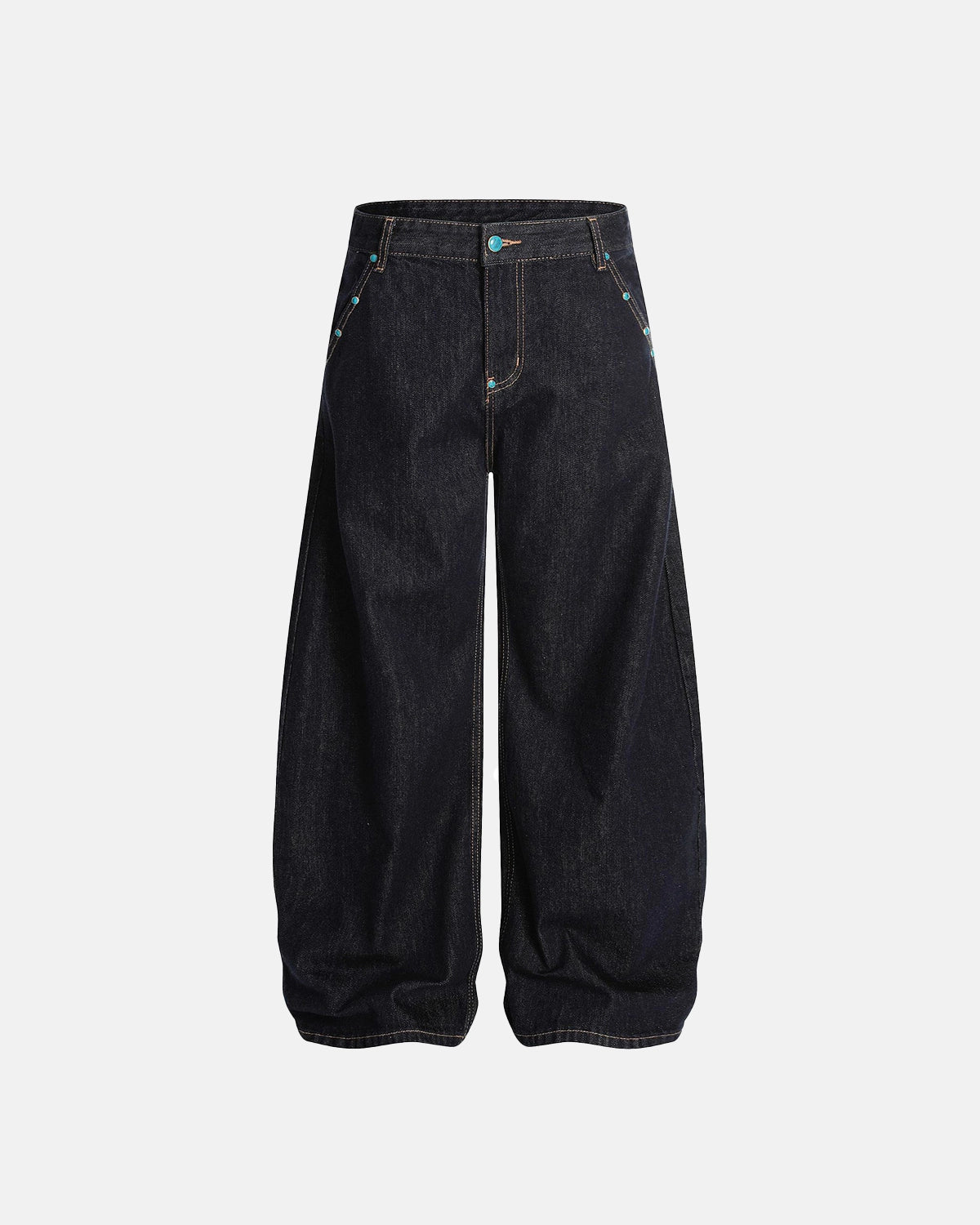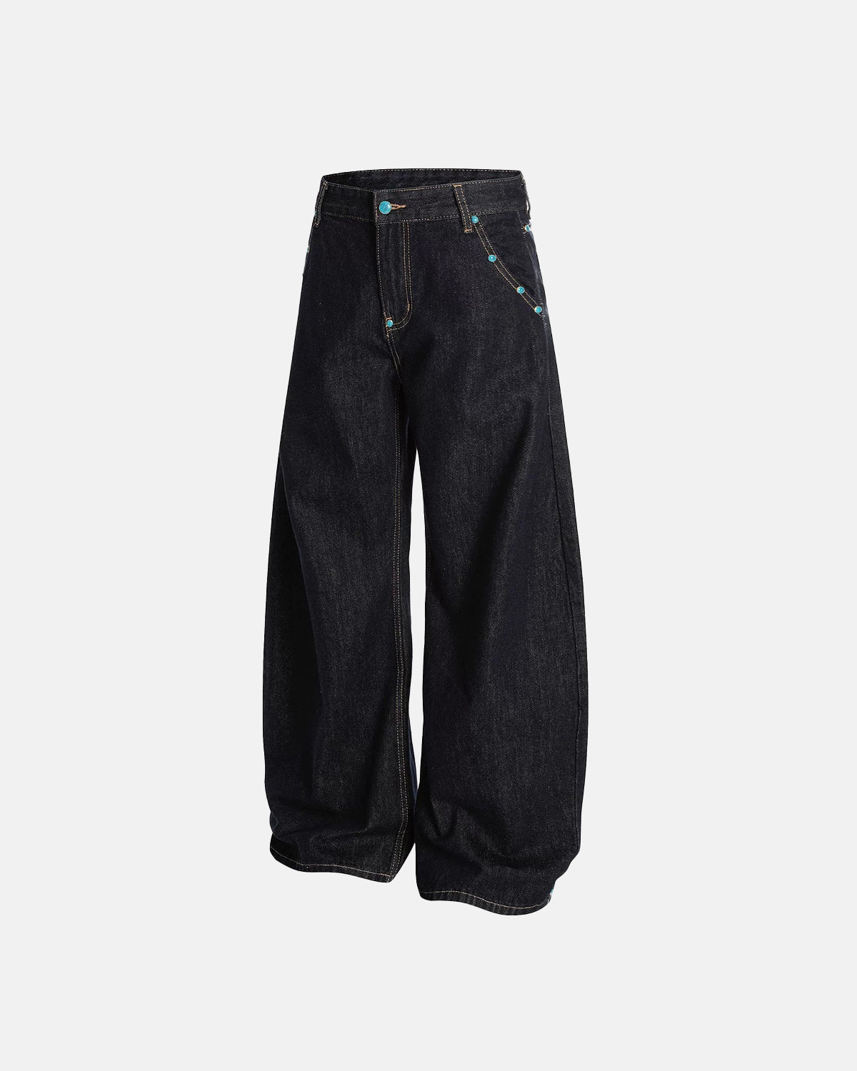 The INFLATION Vintage Turquoise Button Wide-Leg Jeans elevate classic denim with a bold, modern twist. Crafted with high-quality denim, these jeans feature retro-inspired turquoise buttons that add a distinctive touch to the design. The wide-leg silhouette creates a relaxed, flowy fit, combining comfort with a striking street-ready aesthetic.