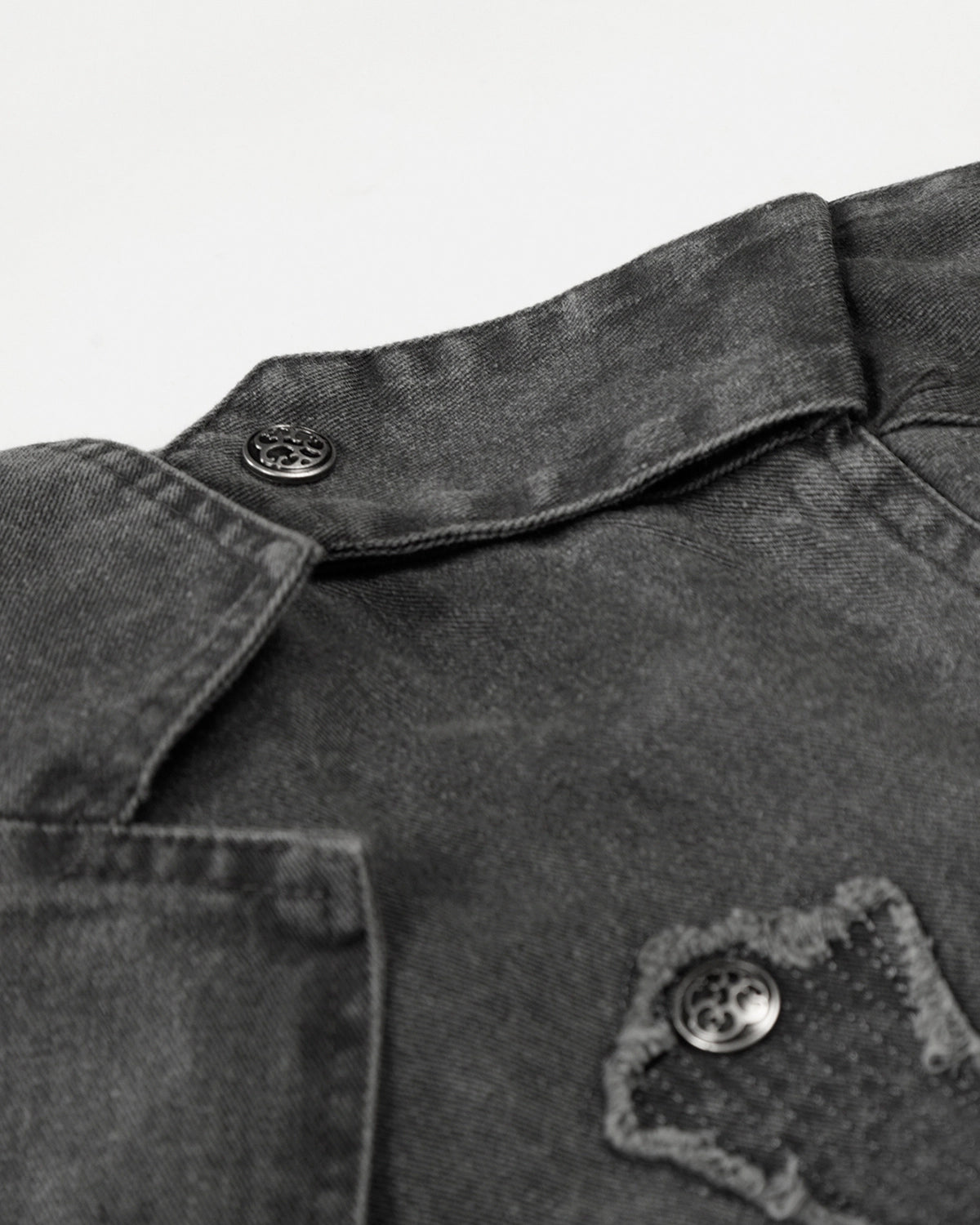 Washed Metal Cross Applique Cargo Jacket | Inflation Streetwear
