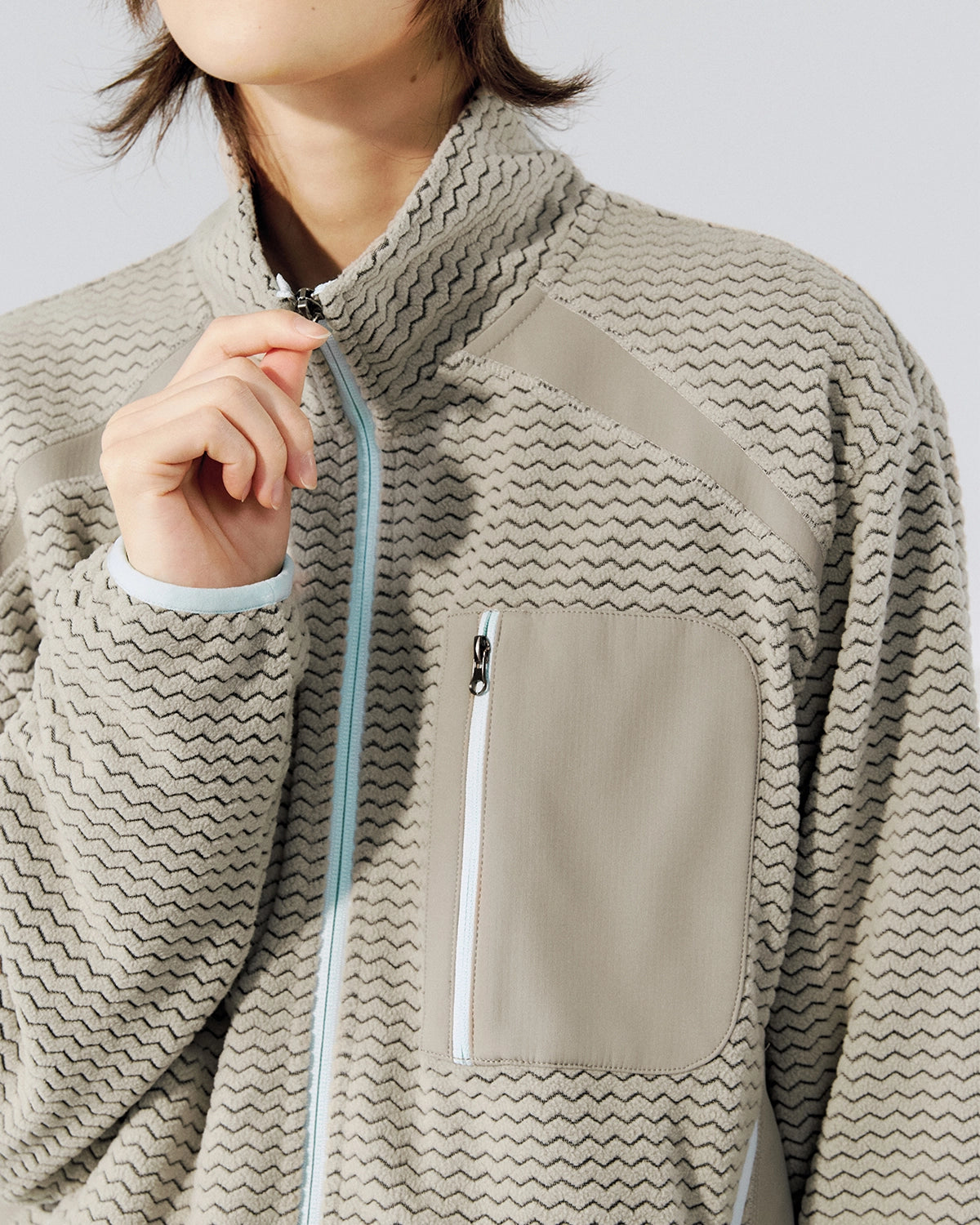 he INFLATION Wavy Fleece Zip-Up Jacket combines thermal performance with modern streetwear style. Made from high-density wavy-pattern fleece, this lightweight jacket offers exceptional warmth and breathability.