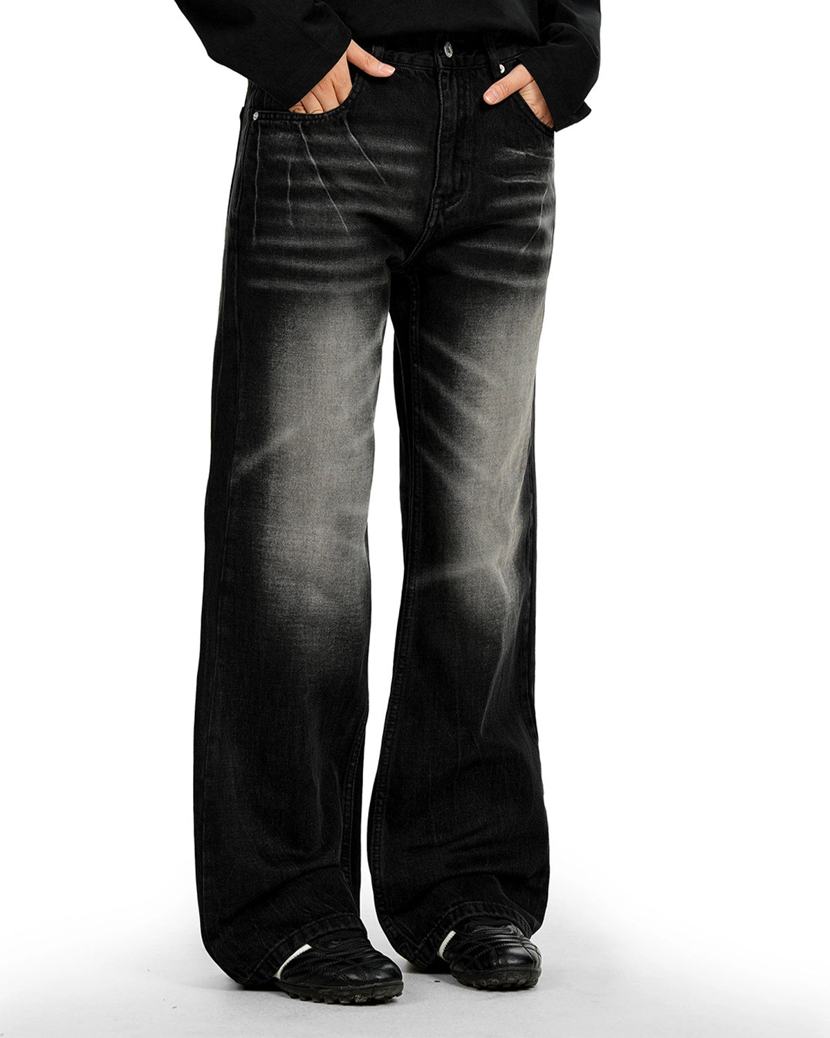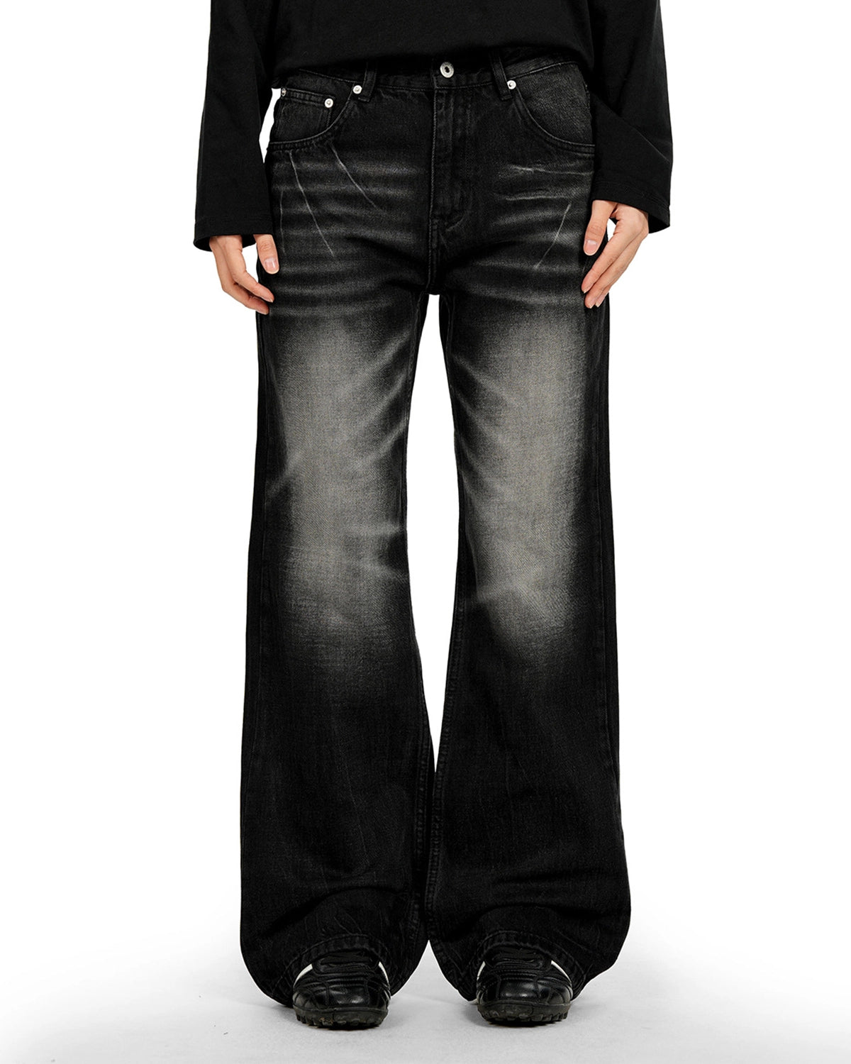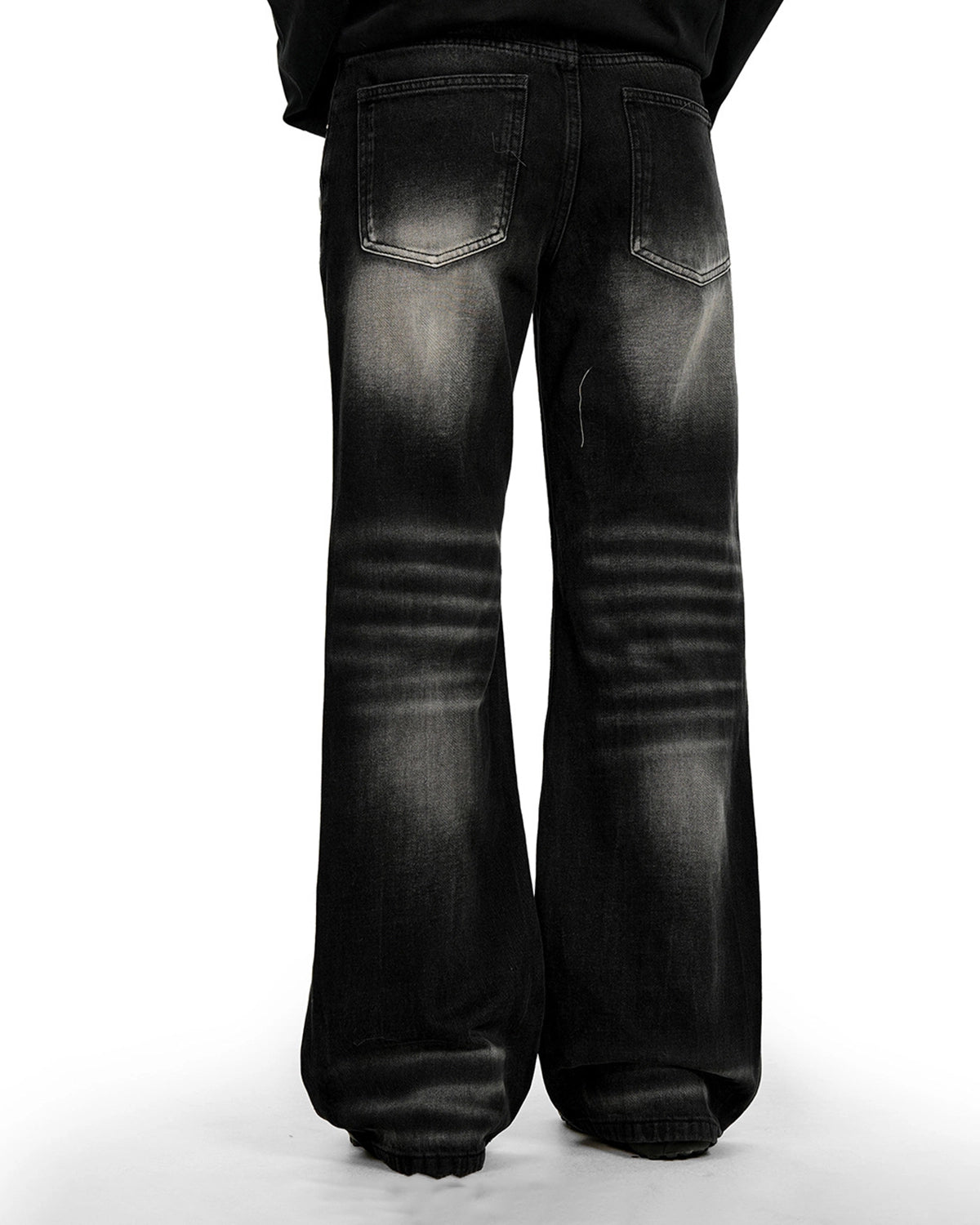 Whisker Washed Flared Baggy Jeans | Inflation Streetwear